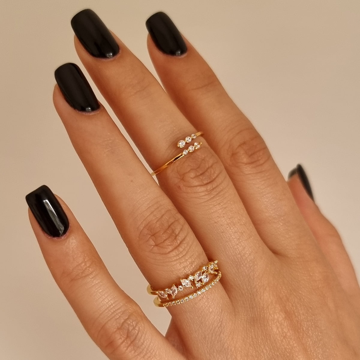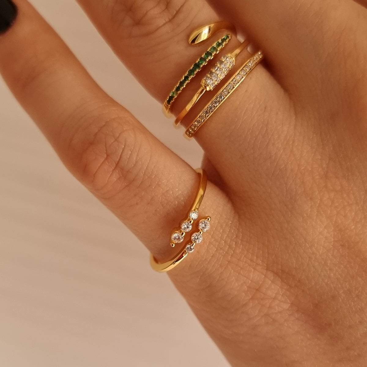 Δαχτυλίδι Clara σε σχέδιο που αγκαλιάζει το δάχτυλο και προσαρμόζεται στο μέγεθος που επιθυμείτε. Από ορείχαλκο σε χρυσό χρώμα με λαμπερά ζιργκόν σε λευκό χρώμα. Είναι μοντέρνο, διακριτικό αλλά και λαμπερό, κατάλληλο τόσο για καθημερινές εμφανίσεις όσο και για βραδινές εξόδους και κοινωνικές εκδηλώσεις. Προσθέτει μία πινελιά λάμψης χωρίς να είναι υπερβολικό. Ιδανικό δώρο για αγαπημένα πρόσωπα και ειδικές περιστάσεις. Φόρεσε το με άλλα κοσμήματα της συλλογής μας, φτιάχνοντας τα δικά σου προσωπικά σετ.