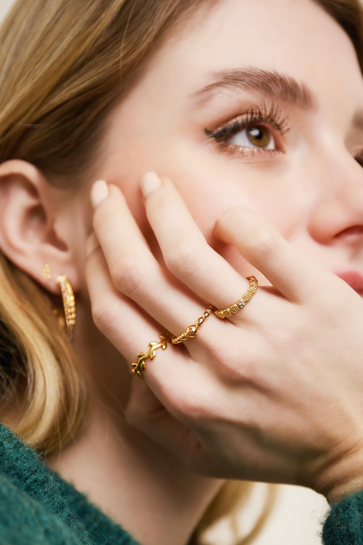 Δαχτυλίδι Kaia με μοντέρνο, ιδιαίτερο σχέδιο για σένα που αγαπάς το διαφορετικό. Μπορεί να φορεθεί όλες τις ώρες της ημέρας και προσθέτει μία πινελιά λάμψης χωρίς να είναι υπερβολικό.