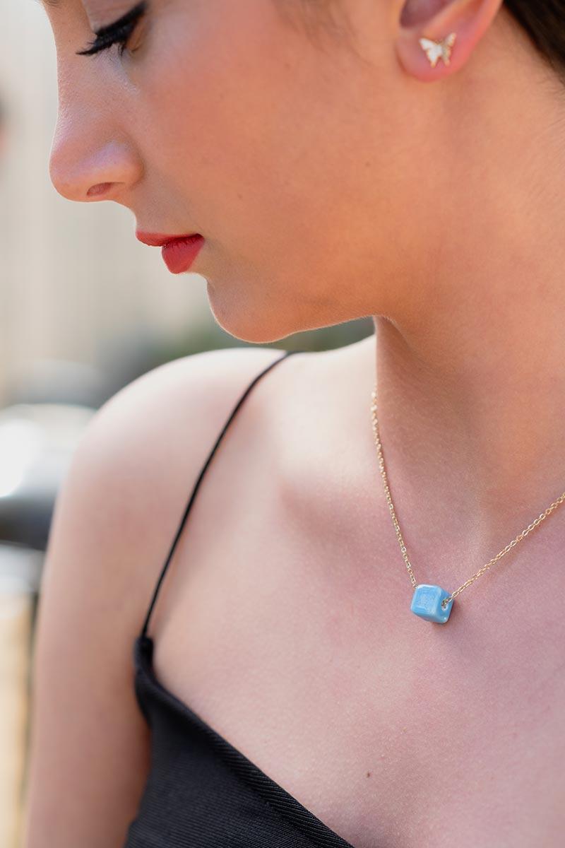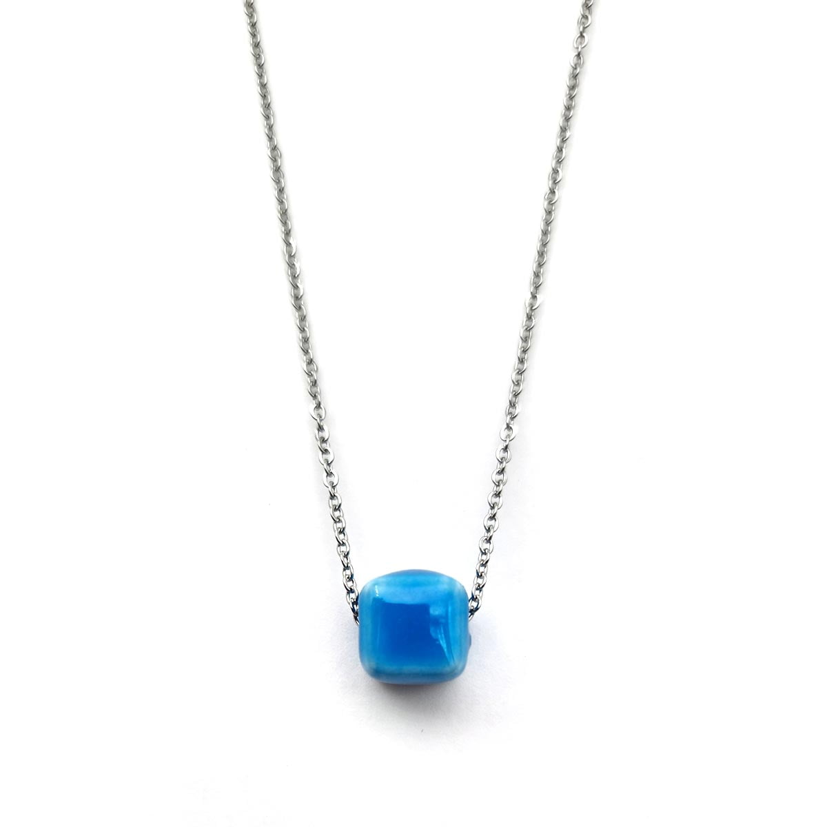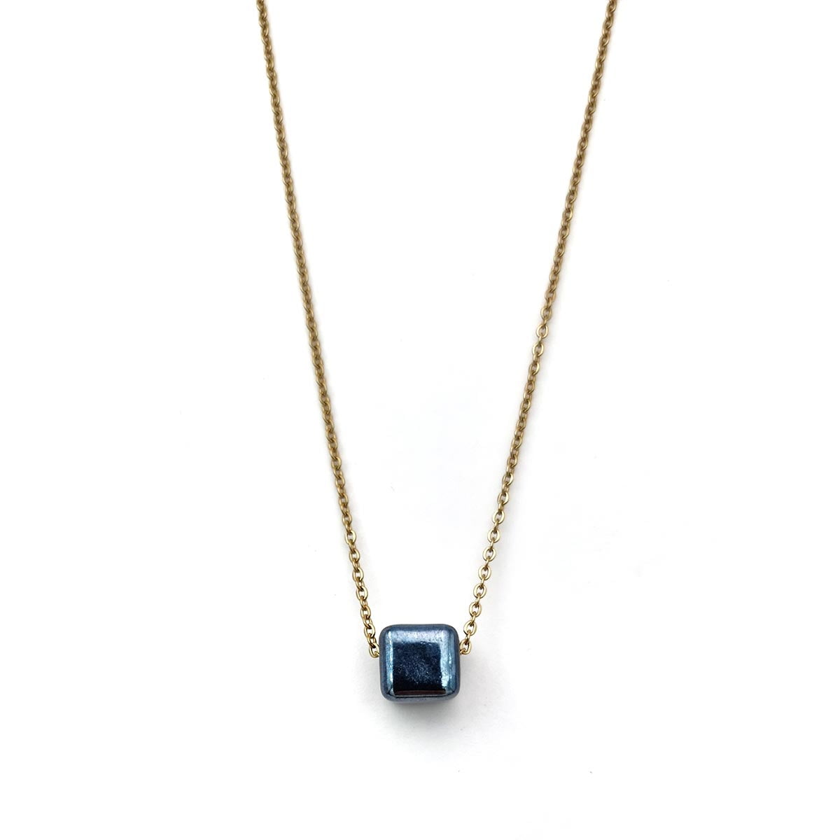 Κλασσικό και διακριτικό κολιέ με λεπτή αλυσίδα cable και μενταγιόν τετράγωνη κεραμική χάντρα σε μαύρο ή τιρκουάζ χρώμα με επικάλυψη σμάλτου. Η αλυσίδα είναι από ανθεκτικό και υποαλλεργικό ανοξείδωτο ατσάλι σε ασημί ή χρυσό χρώμα. Με κούμπωμα καβουράκι και προέκταση για προσαρμογή μήκους. Φόρεσε το όλες τις ώρες της ημέρας.
